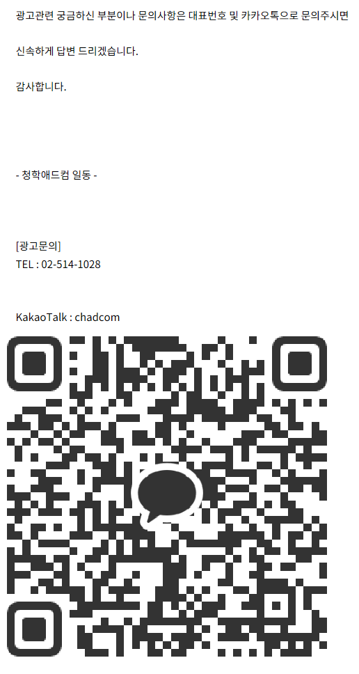 [청학애드컴] 대표전화 : 02-514-1028 ( KakaoTalk: chadcom )